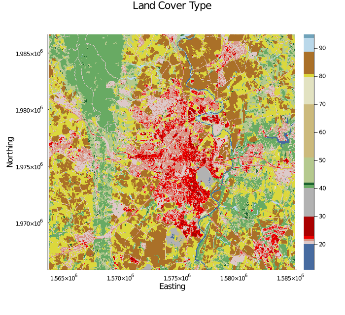 title = "Land Cover Type", xlabel = "Easting", ylabel = "Northing",